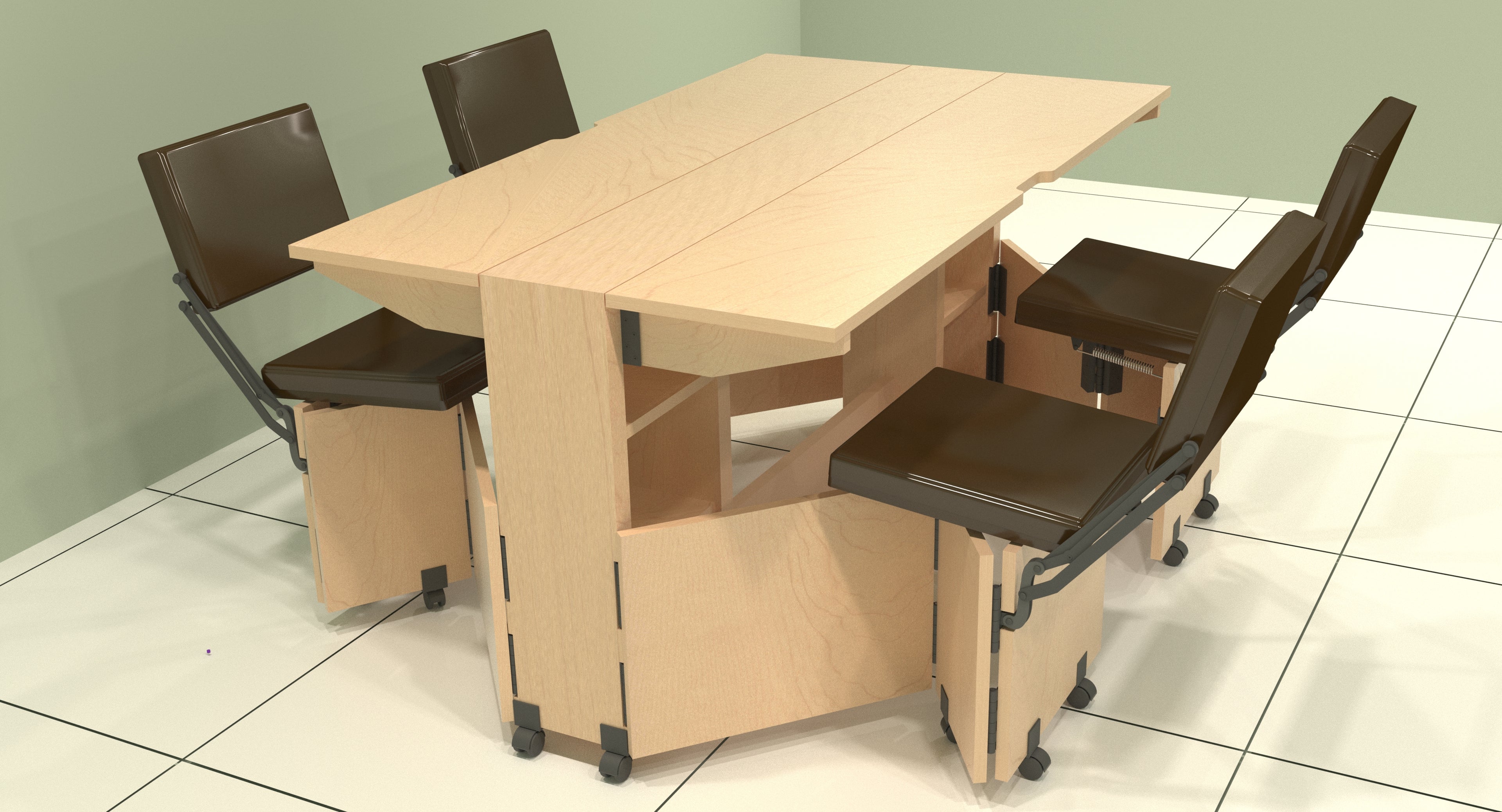 FOLDOMATIX Engineered Wood (Plywood) 6 Seater Folding Dining Table with 3 Shelves Pull out stainless steel drawer (Without Chairs)