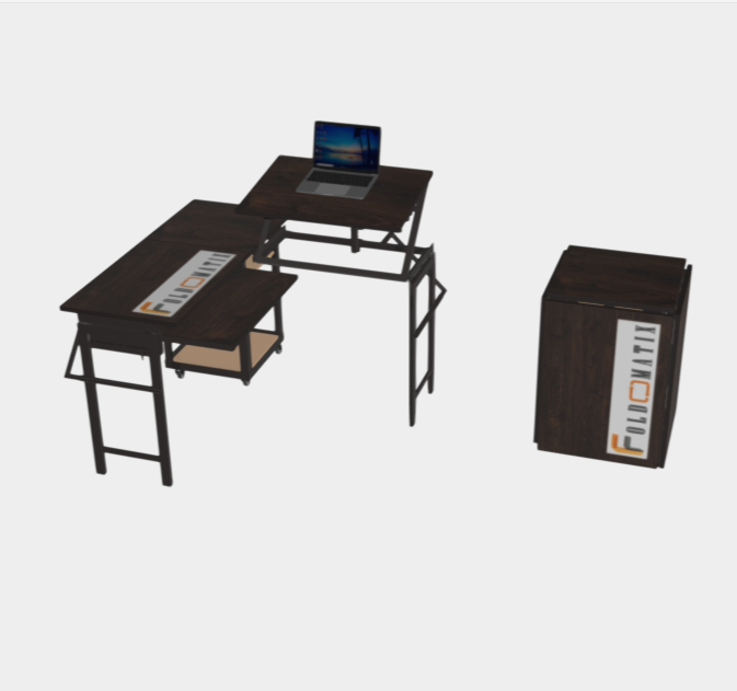 3D Augmented reality AR Demo of Folding L-Shaped Angle height shelf and keyboard tray adjustable Workstation